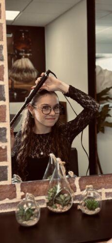 Pendant mes prestations, je suis assez bavarde, car j’aime échanger et partager avec vous. Pour moi, la coiffure n’est pas seulement une transformation esthétique, c’est aussi un moment convivial, où l’on se sent bien et où l’on prend soin de soi.